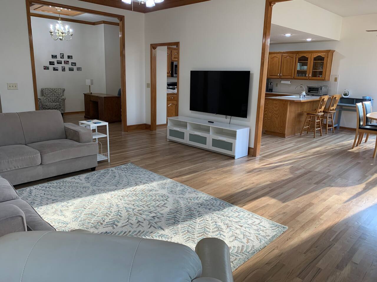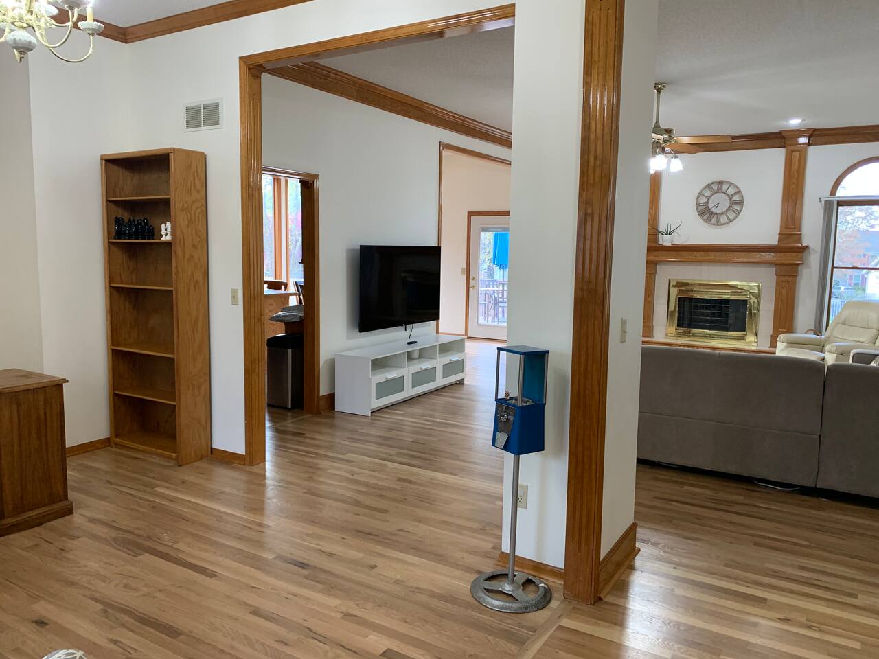 Welcome to our cozy ranch-style home in the heart of Kansas City suburbs! This fully wheelchair-accessible retreat features 3 spacious bedrooms, 2 bathrooms and an open floor plan with no stairs, a dedicated workspace, and seasonal pool access. Perfect for easy mobility. Enjoy a peaceful neighborhood with quick access to shopping, dining, and highways. Whether you're her for work or play, comfort and convienience await! This single family home is 2000 square feet all on 1 level.